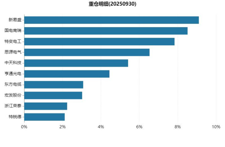 重仓个股包括了:新易盛、国电南瑞、特变电工、思源电气、中天科技等。